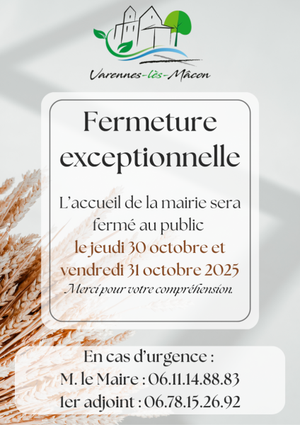 Fermeture exceptionnelle de l’accueil – 30 et 31 octobre 2025