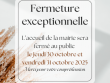 Fermeture exceptionnelle de l'accueil – 30 et 31 octobre 2025 Fermeture exceptionnelle de l’accueil – 30 et 31 octobre 2025 |